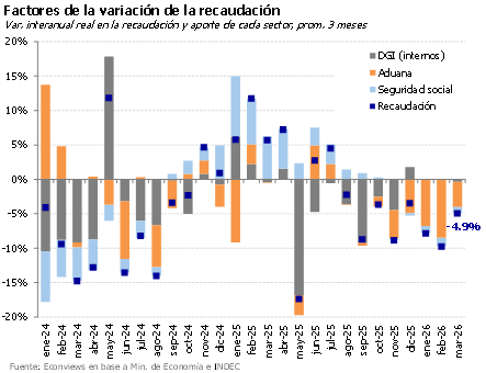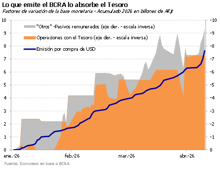 Primer trimestre de compras fuertes. En los últimos días el Central pisó el acelerador y cerró el primer trimestre con compras de divisas superiores a los US$ 4,300 millones, a un ritmo de casi US$ 1,500 millones mensuales. Con el inicio de la cosecha gruesa, el Banco Central tiene ahora la oportunidad de profundizar ese ritmo y completar un segundo trimestre aún más sólido, acercándose al objetivo de US$ 10,000 millones para el año. Las reservas netas mejoraron, aunque siguen en terreno negativo por los pagos de deuda y la caída en el precio del oro.