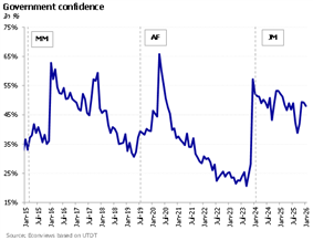 A turning point? After a year characterized by high economic volatility and political uncertainty, the government has strengthened its political position, supported by greater representation in Congress and continued popular backing. Confidence in the administration has recovered to high levels after suffering a significant decline prior to the October elections. This political consolidation has improved governance conditions and enhanced the government’s capacity to advance its policy agenda.